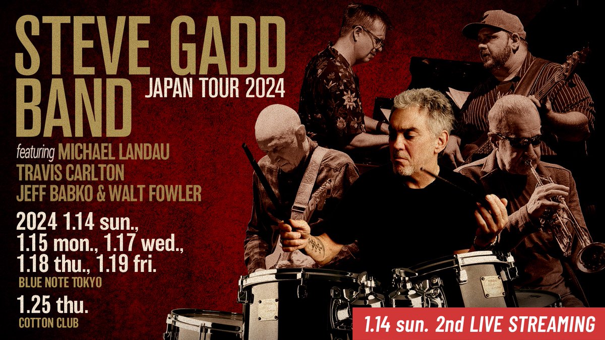 #スティーヴ・ガッド・バンド 初日公演の配信をご視聴いただきました皆様、ありがとうございました。本日の公演の模様は1/16(火)までアーカイブ配信をご覧いただけます。配信チケットの詳細はこちらから→ x.gd/3flsD (※販売終了:1.16 tue. 10:00pm、配信期限:1.16 tue. 11:59pm)