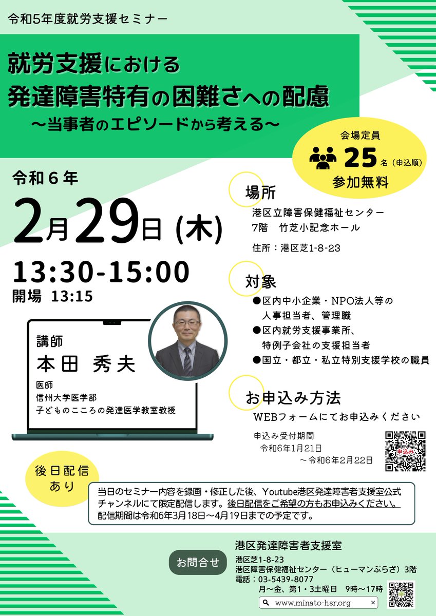 『就労支援における発達障害特有の困難さへの配慮~当事者のエピソードから考える~』と題したセミナーを開催いたします。