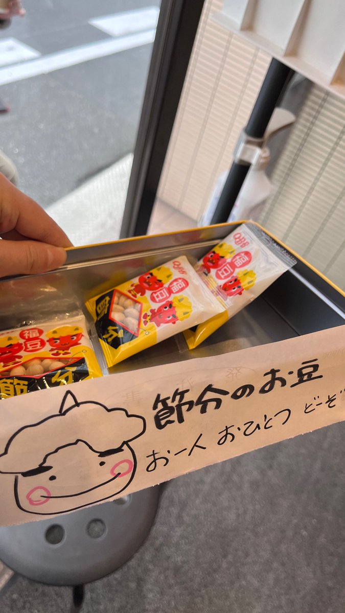 近所のお弁当屋さんで福豆配ってました。こういうのちょっと嬉しいですよね。もらってポリポリ食べました。
