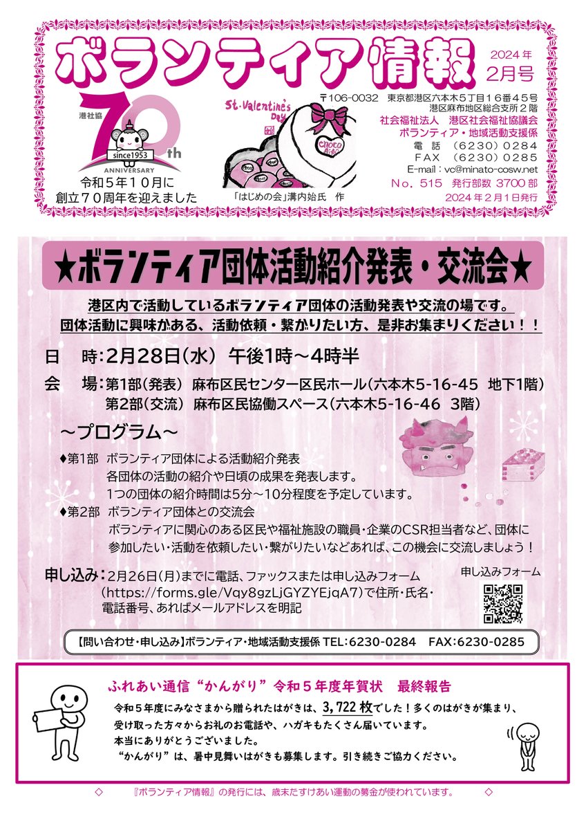 ボランティア情報2月号を発行いたしました。是非ご覧ください。