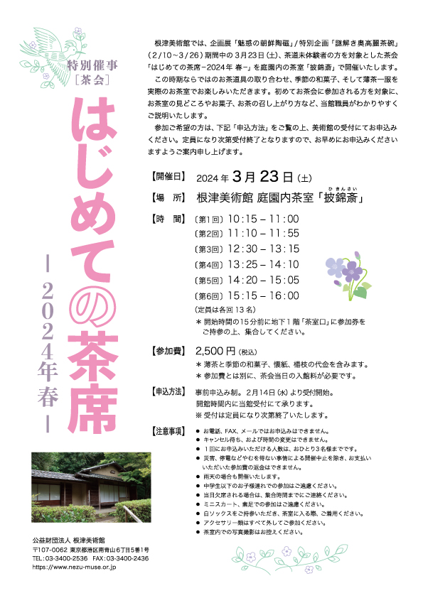 詳細は当館ウェブサイト(www.nezu-muse.or.jp/jp/event..) ご覧ください。