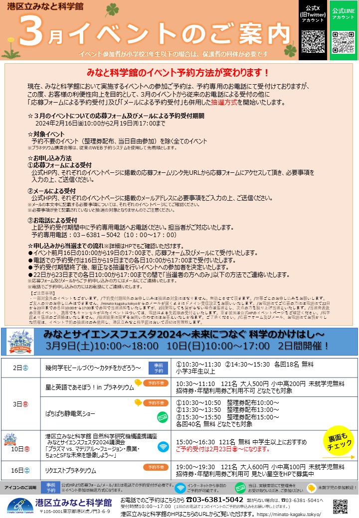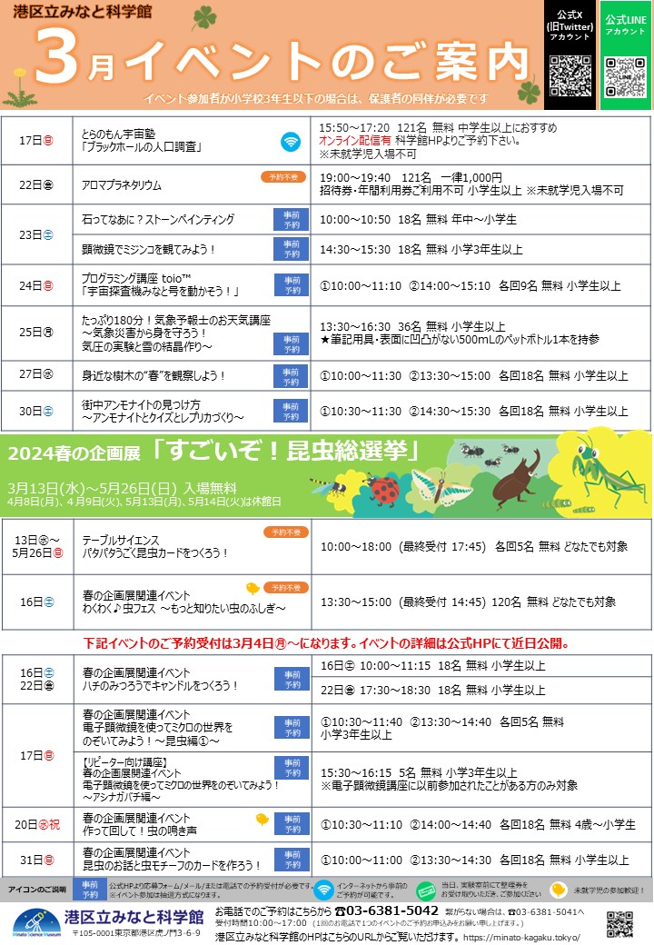 本日10時より3月のイベント予約を開始いたします! イベント詳細につきましては、当館HPよりご確認をお願いいたします。