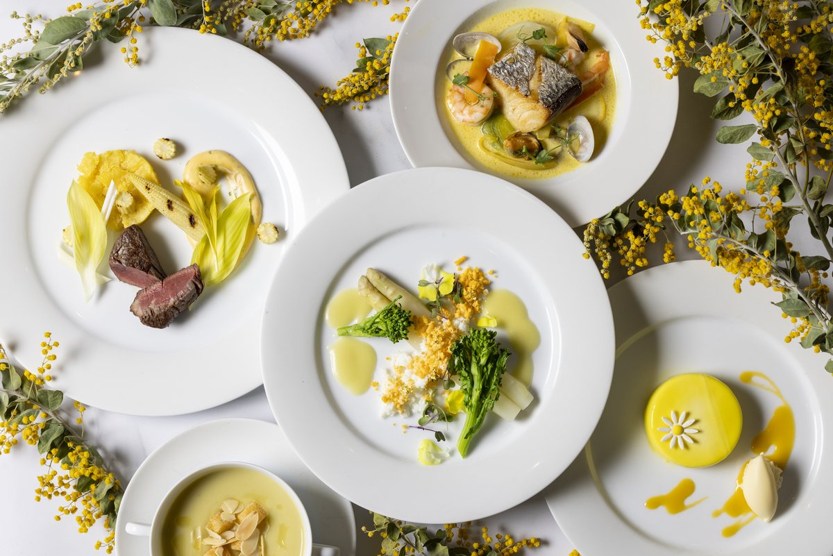 女性パティシエ考案のミモザがモチーフのタルトや、ミモザイエローで彩ったディナーコースなど、#ジェンダーの平等 #女性のエンパワーメント を推進し、誰もが自分らしく輝ける社会の実現を願い、さまざまなメニューをご用意いたします。