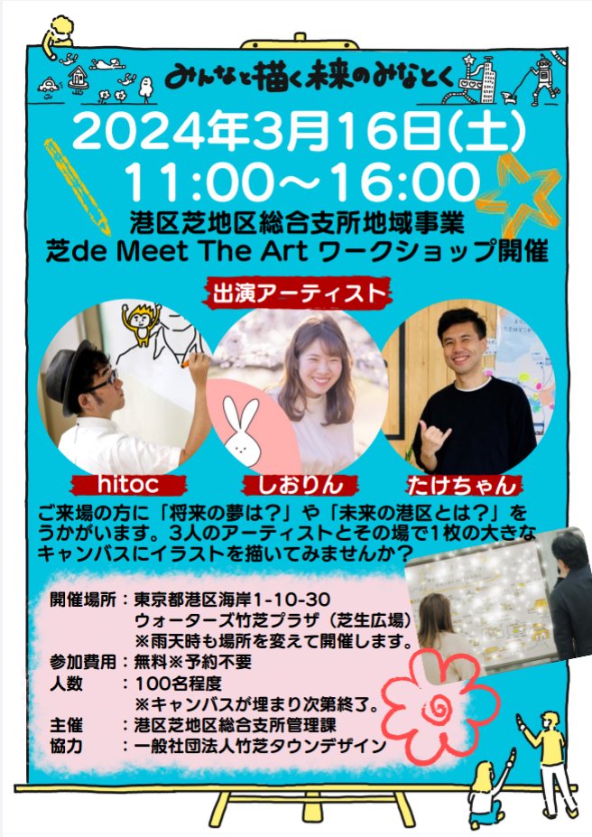 港区の未来についてアーティストと一緒に1枚の大きなキャンバスにイラストを描いていきませんか👨🎨大人も子どもも楽しめるイベントです🥰