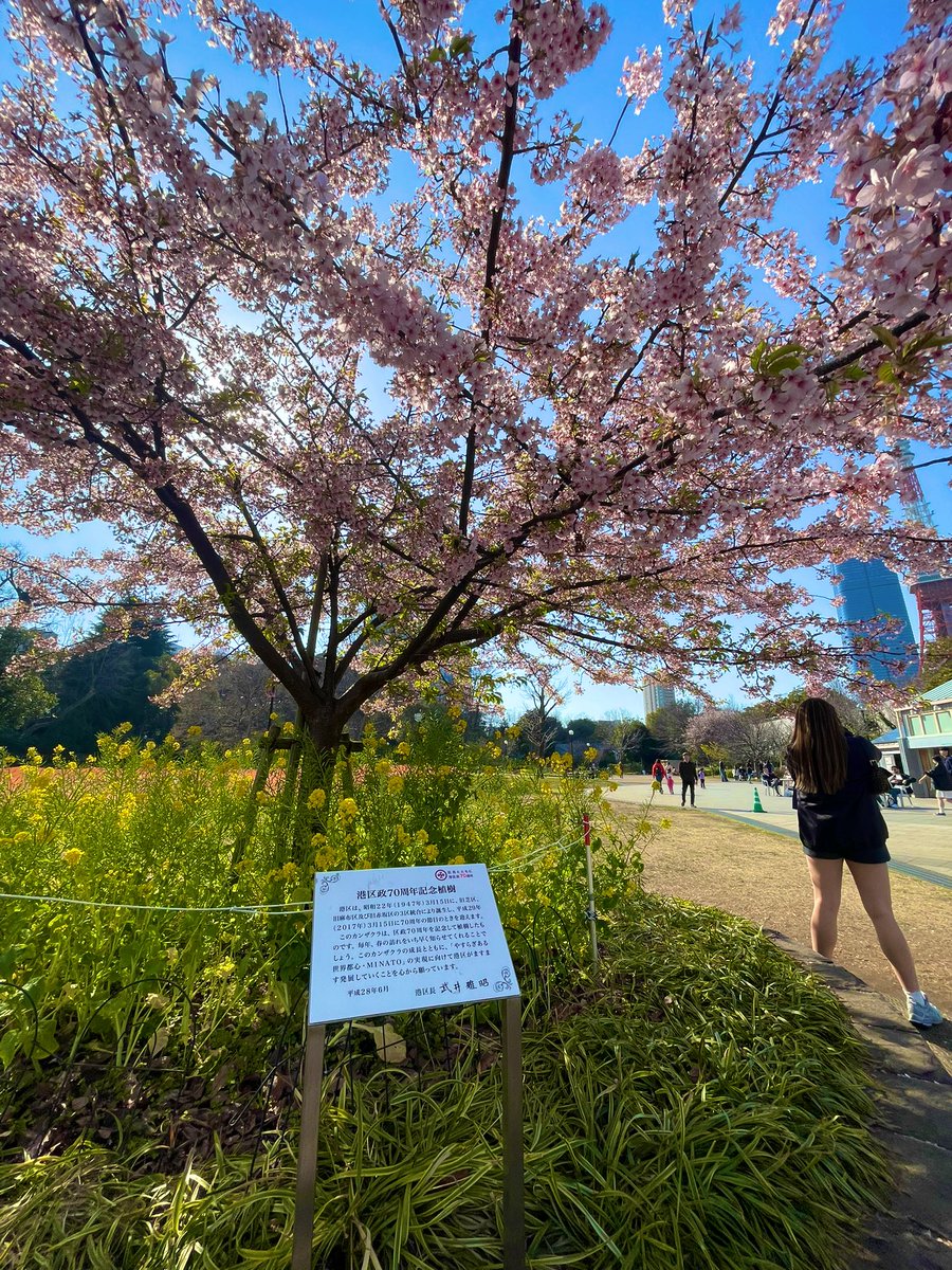 芝公園にある港区政70周年記念植樹が映えスポットになってた🌸 予算委員会で桜を見る余裕すら無かったけども改めてみると春の訪れを感じますねぇ🥹✨ ユーミンの春よ、こいを聞きながら打ち合わせ行ってきます💨 #芝公園 #港区