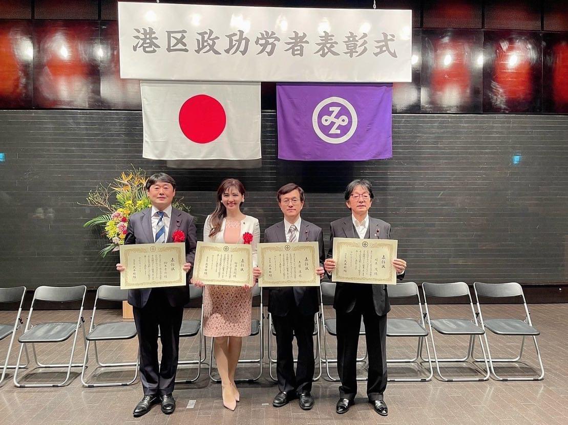 今日は、令和5年度港区政功労者表彰が行われ、各分野の功労者53名が表彰されました。私も区議12年務めた同期とともに表彰されました。