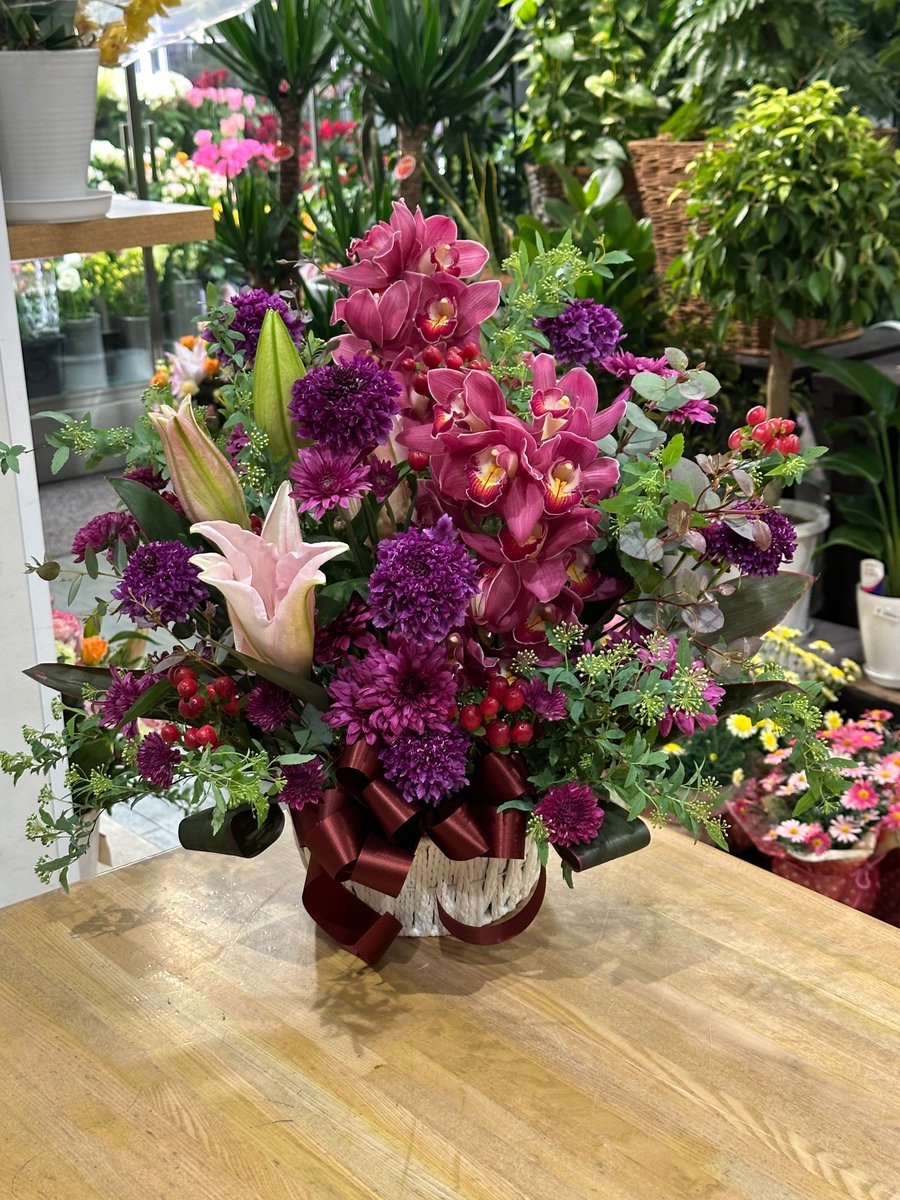 白金のマダムへ贈るイメージでお誕生日にシックな感じで、おまかせアレンジメントのご注文。
