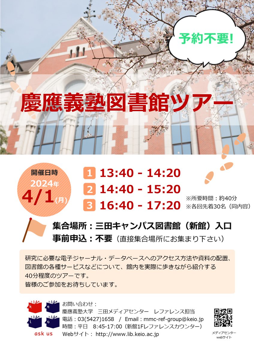 来年度から三田キャンパス所属になる学生の皆様、ガイダンス前後などでお気軽にどうぞ!💁(yt)