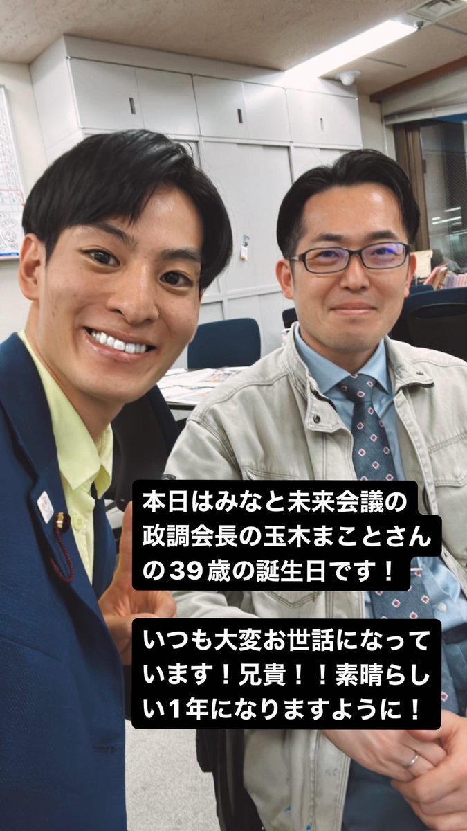 政調会長の玉木まことさんの39歳の誕生日です!