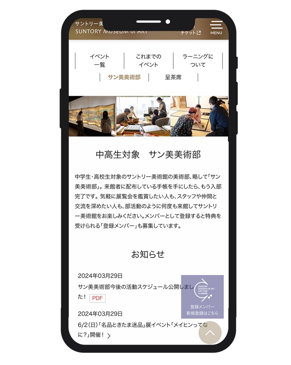 サントリー美術館の中高生向け美術部「サン美美術部」では、気軽に展覧会を鑑賞したい人も、スタッフや仲間と交流を深めたい人も大歓迎です!