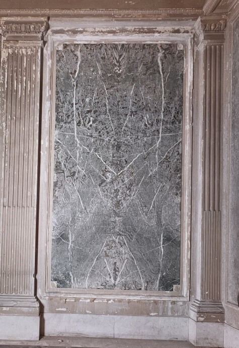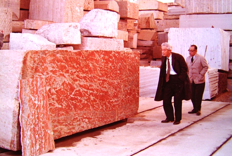 改修の指揮に当たった村野藤吾は自ら石を探し歩き、岐阜県大垣市の石材店で戦前に輸入された貴重な原石を見出しました。これが現在張られている大理石です(続)