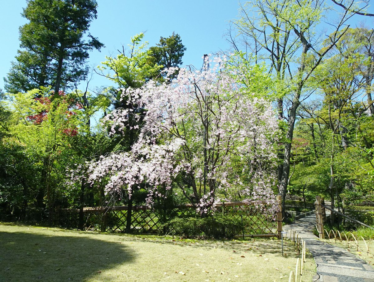 先日ご紹介したヤマザクラは昨日の雨で散ってしまいましたが、今日はシダレザクラが満開です。全館休館中で残念ながら皆様にご覧いただけないので、この場でご披露です。 4月13日(土)開幕の「国宝・燕子花図屏風-#デザインの日本美術」どうぞお楽しみに。