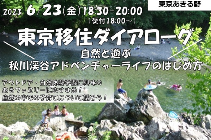 【#あきる野市移住・定住セミナー】令和5年6月23日(金)18:30~20:00,参加方法:対面・オンライン,「自然と遊ぶ秋川渓谷アドベンチャーライフのはじめ方」と題し、先輩移住者さんにあきる野のこと..