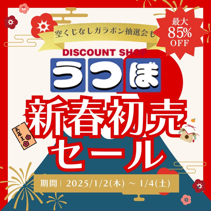 /例年以上の安さと品揃え『ディスカウントショップうつぼ』2025年初売り1/2(木)から開催\時計やブランド品、デジタル家電、楽器などが年に一度の大特価人気アイテムが驚愕の価格でGETできるチャンス現..