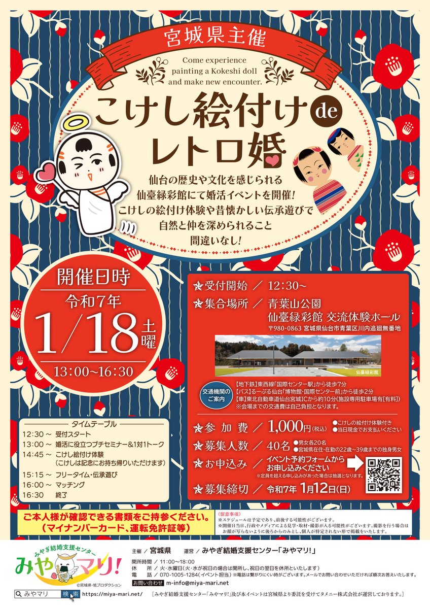 \新しい年に新しい出会い/《宮城県主催》こけし絵付けdeレトロ婚1/18(土)13:00-16:30【要事前申込】宮城県在住・在勤22歳~39歳までの独身男女参加費税込1,000円こけし絵付け体験を楽..