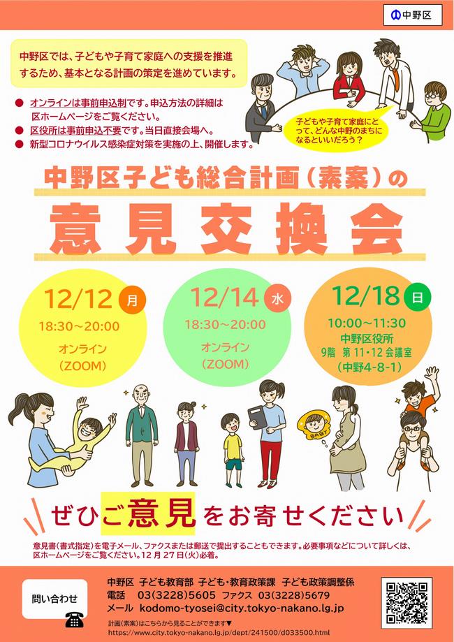 【中野区・意見交換会】子どもと子育て家庭のための計画にご意見を