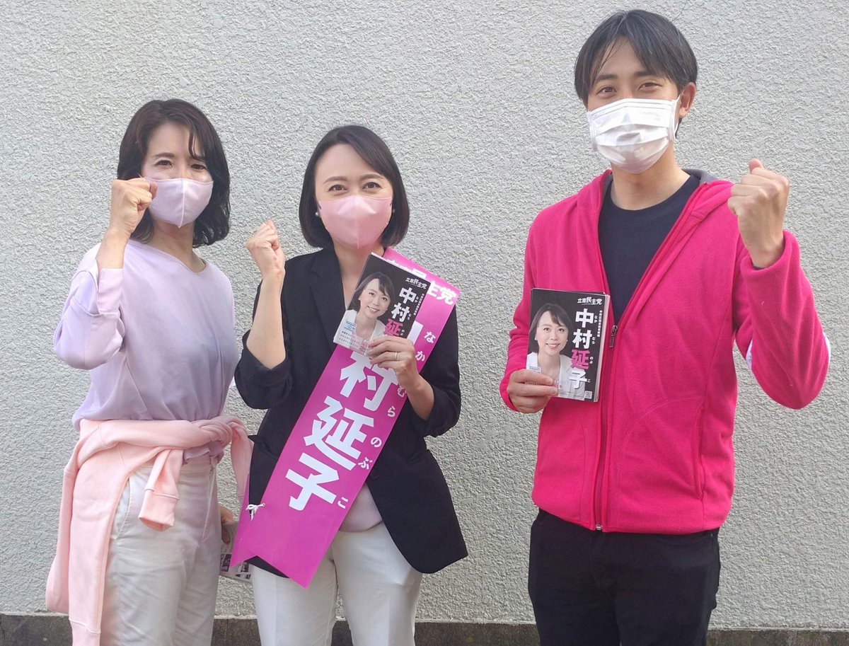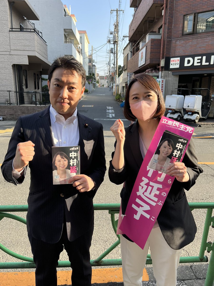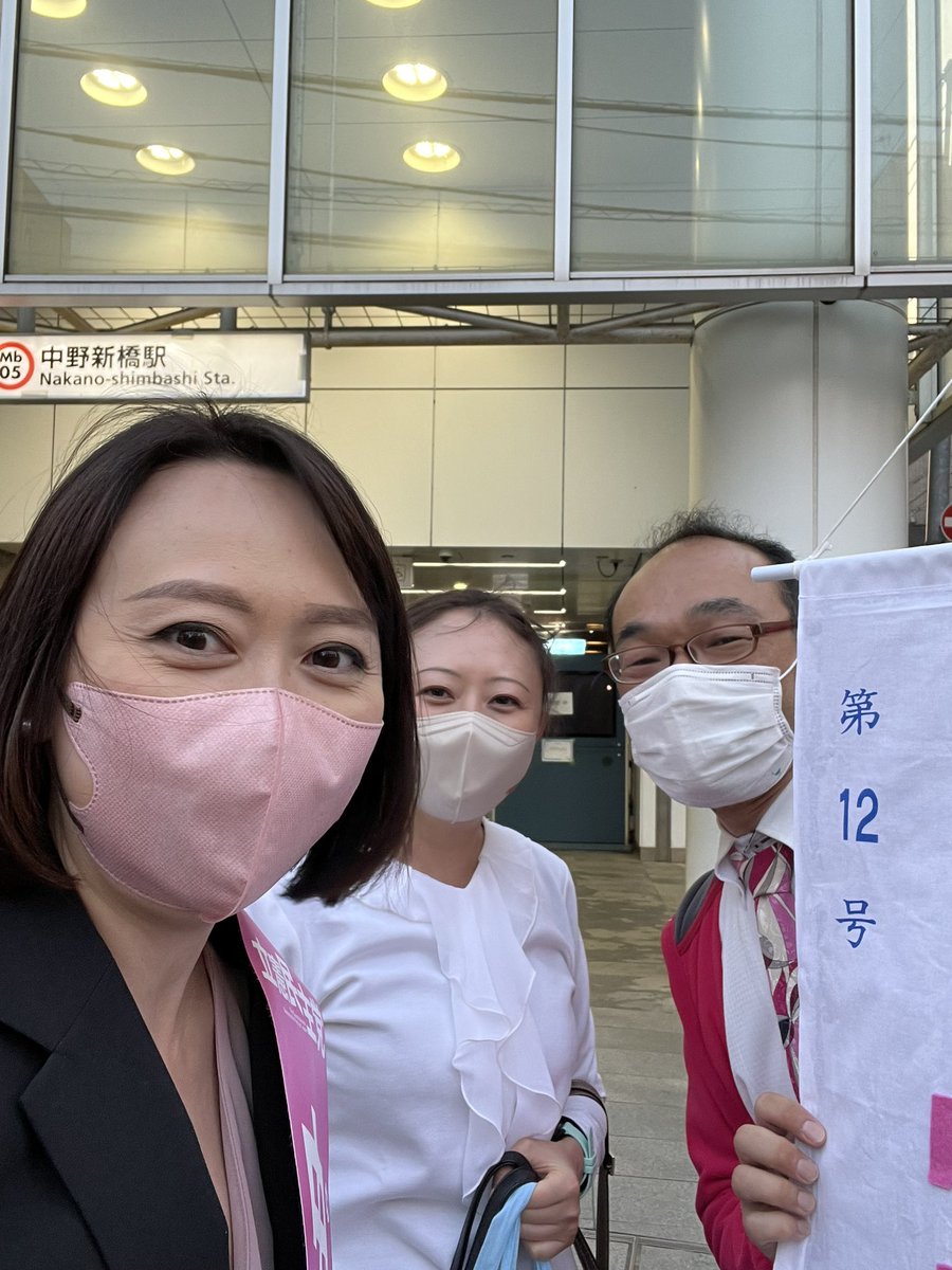 仲良しの田畑直子千葉市議、川崎市議に当選したばかりの嶋りょうたさん、中谷一馬衆議院議員、東友美町田市議が応援に!楽しく歩きながらの遊説、そしてスーパー前と駅前でおうったえしました。ボランティアの方にもご参加いただきました!