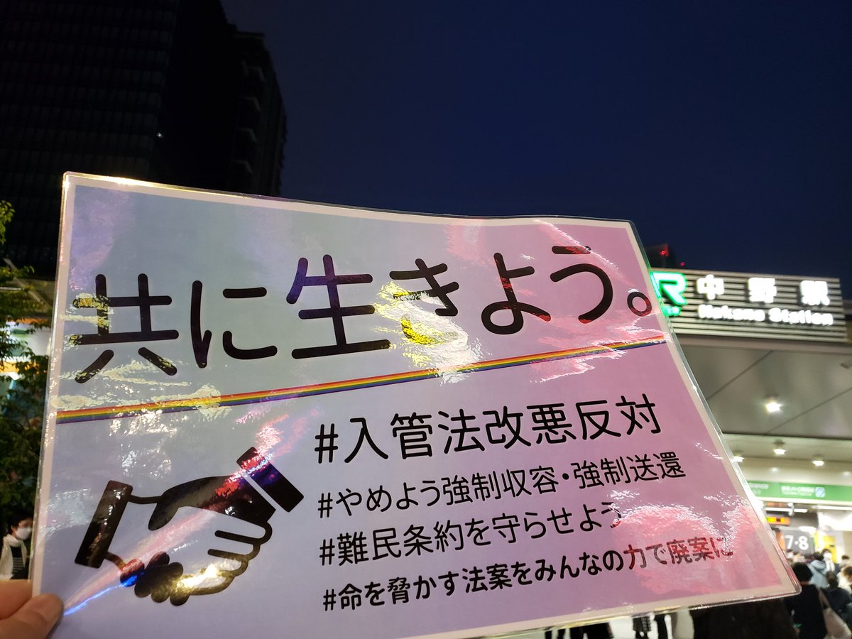 中野駅北口での #入管法改悪反対アクション 。緊急な呼びかけの中、参加者がどんどん増えて、100名を超える方々がそれぞれの想いを持って。一人ひとりの力って、本当にすごいなと。なんだかものすごく力をいただきました。必ず廃案に。 #入管法改悪反対 #共に生きよう