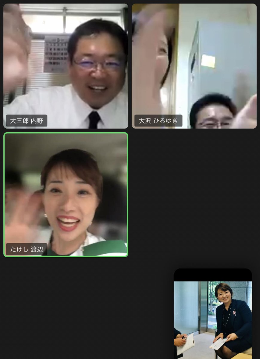 中野の議員団は、会議のためオンラインで出発のお見送り。