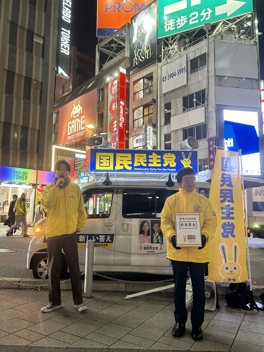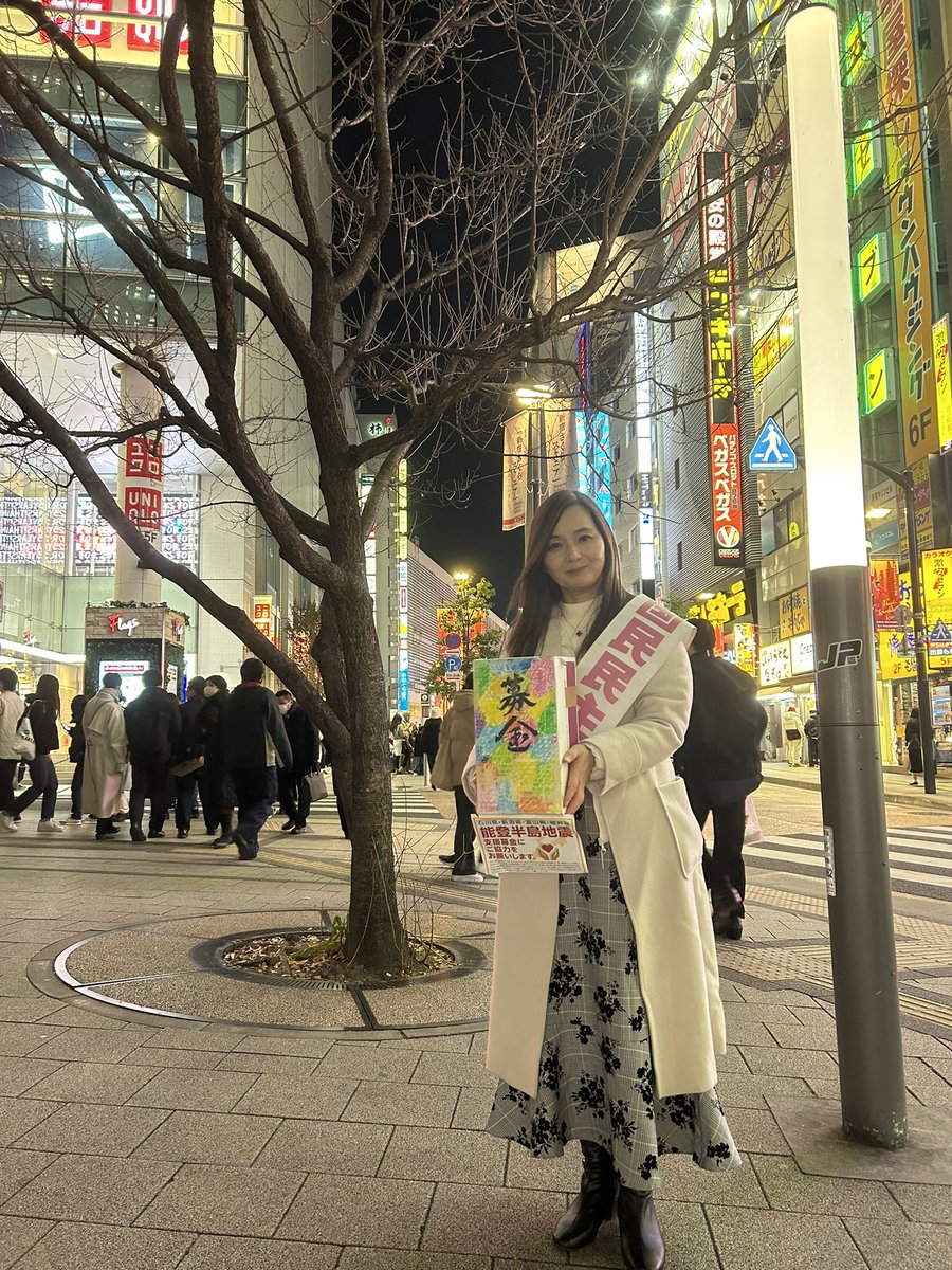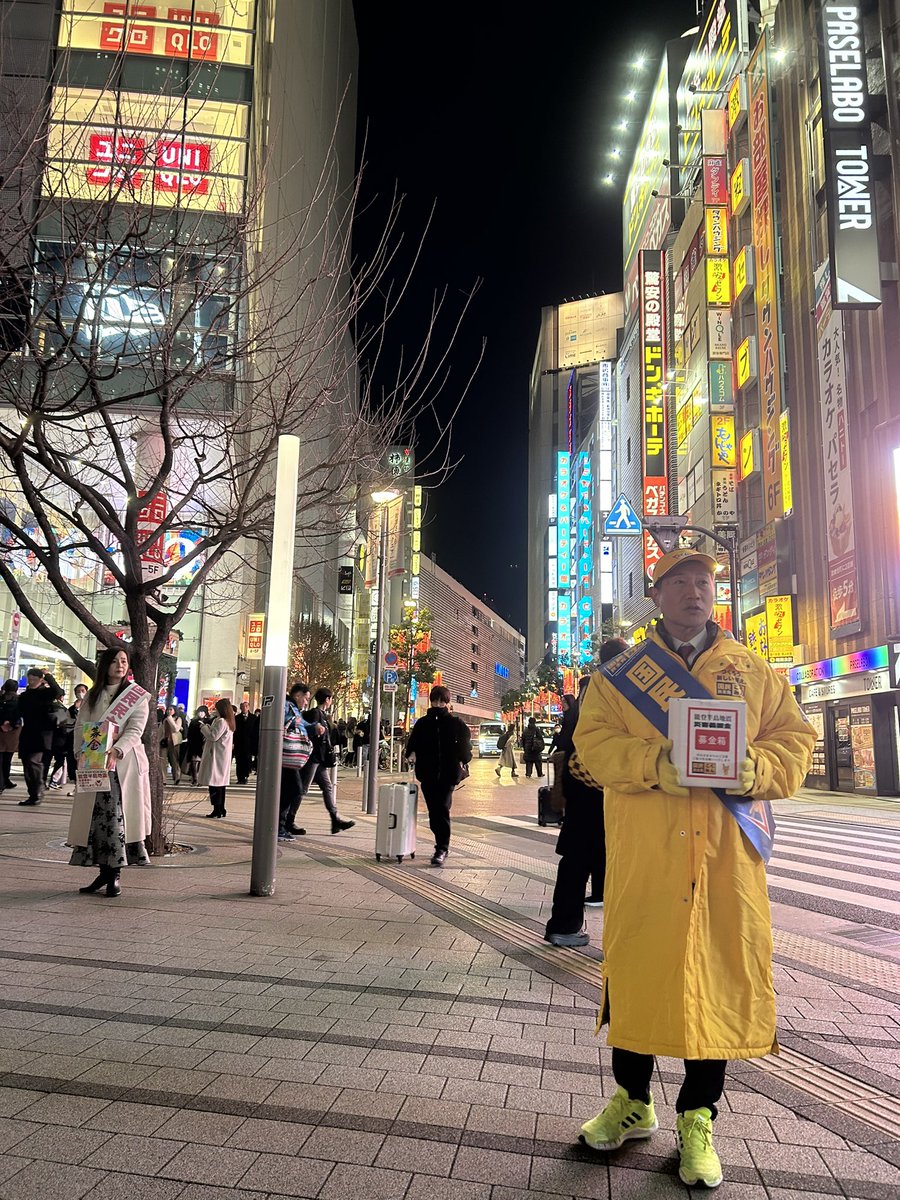 18時に演説を終え、少し間を空けて新宿駅東南口にて能登半島地震支援募金活動。