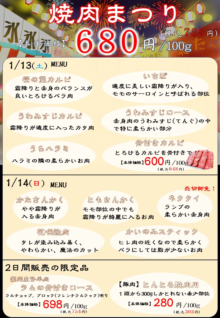 1月13日(土)~14日(日)に、焼肉まつりを開催🐮