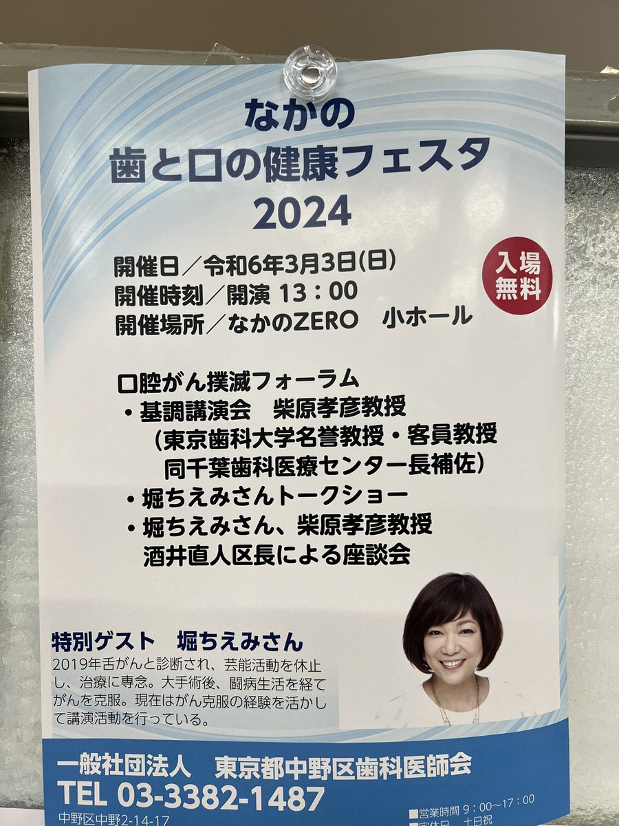 3/3には堀ちえみさんを招き「歯と口の健康フェスタ」が開かれます。