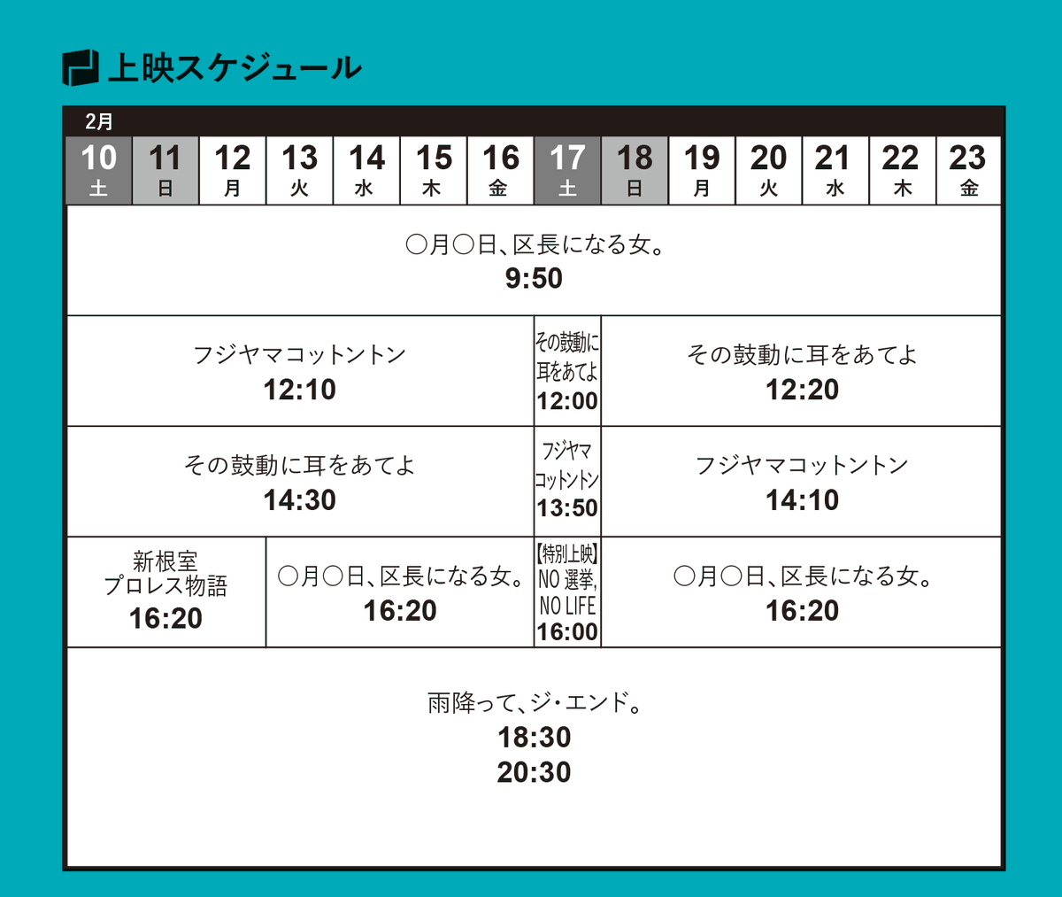 2/13(火)~16(金)タイムテーブル