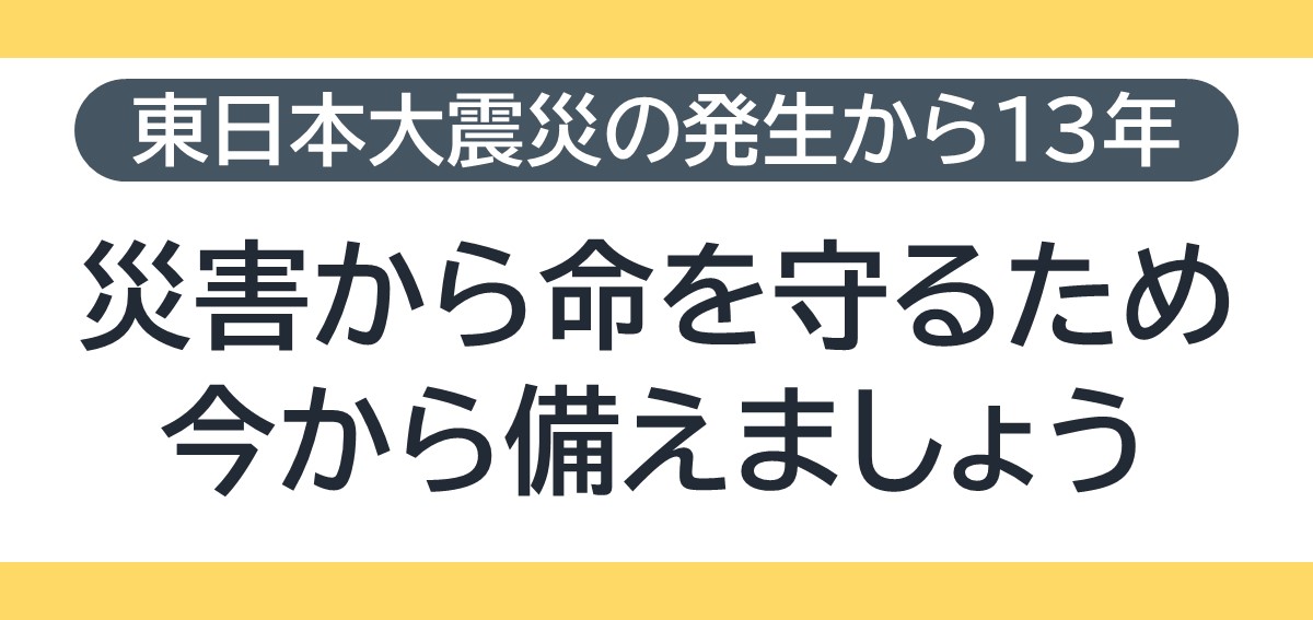 家具等の固定や向きの変更、備蓄品の準備など、災害への備えを今一度ご確認ください。