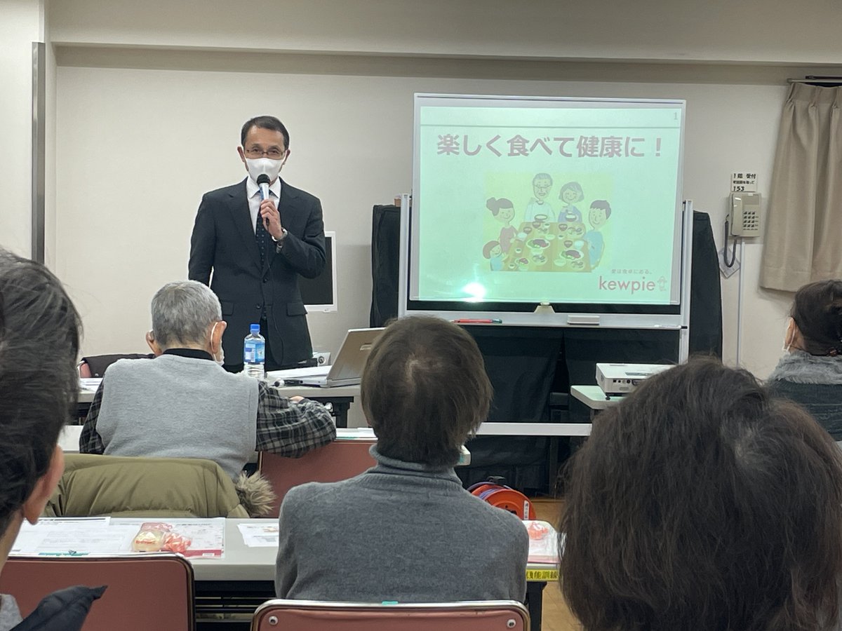 キユーピー株式会社の前田淳さんを講師にお招きし、栄養が偏らないように食事をすることの大切さや、シニア世代の食事の取り方について、楽しみながら学びました。