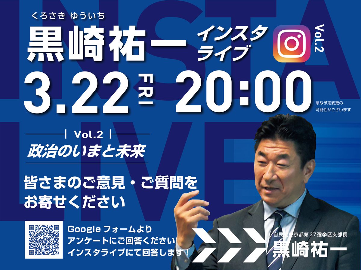 3/22(金)に第2回 #黒崎祐一インスタライブ を配信いたします!