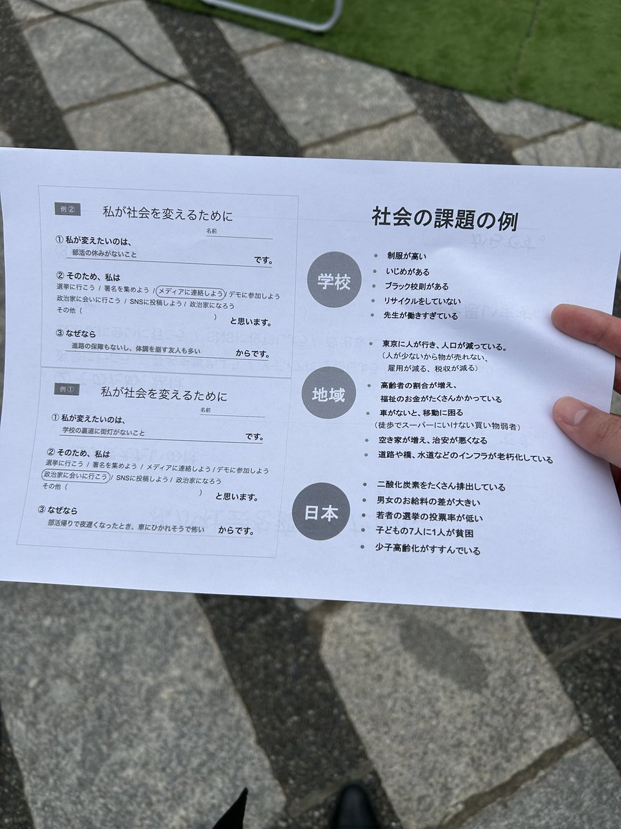 拝見した主権者教育についてのワークショップは、政治との距離感や若者のほうを向く政治、投票率との関係など、親しみやすく面白い内容でした🙆♀️