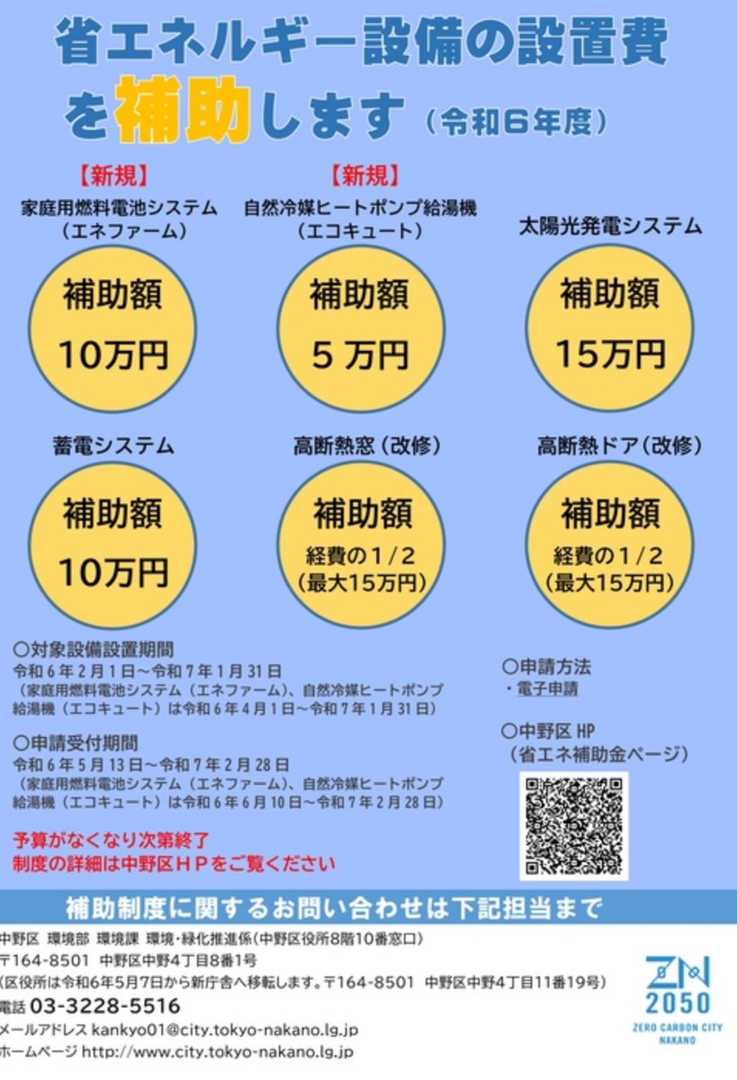 「中野区は断熱窓にしたら補助とかあるの?」 先日区民の方から聞かれました。ありますよ〜 省エネルギー設備等の設置に係る費用の一部を補助します/中野区 #高断熱窓 #高断熱ドア #太陽光発電 #蓄電システム