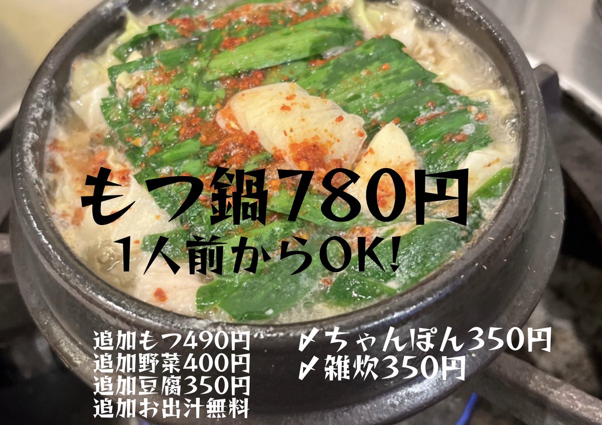 二代目酒処よろかのもつ鍋780円はお一人様からお作りします。