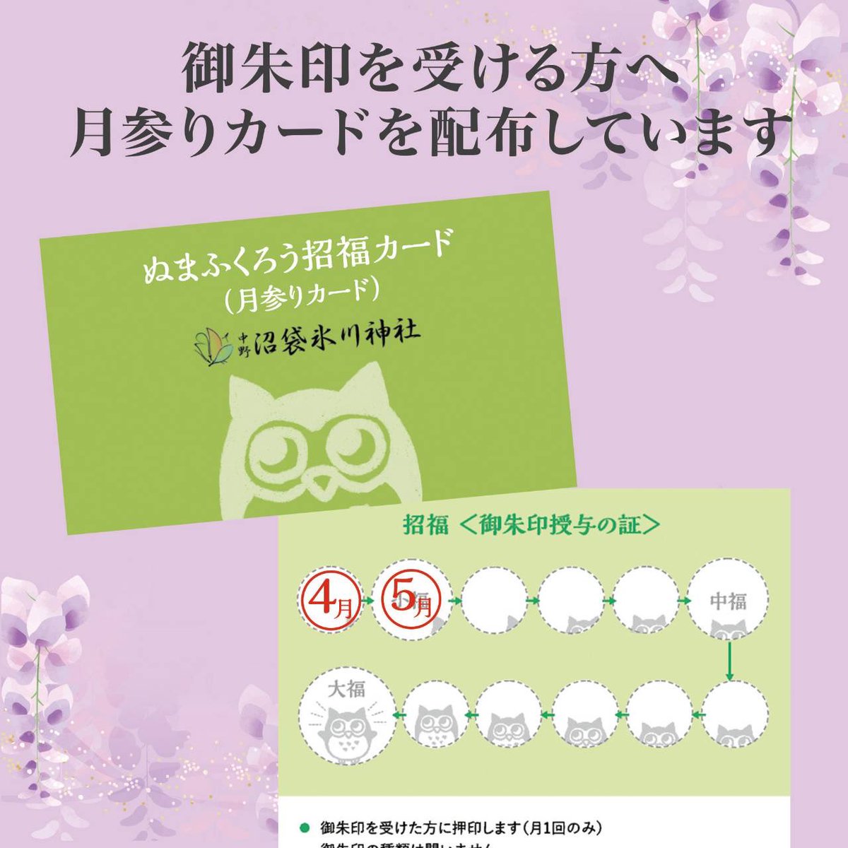4月より「ぬまふくろう招福カード(月参りカード)」を配布しております。