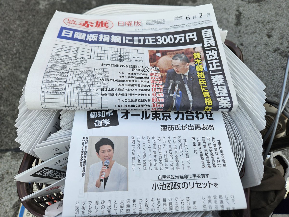 おはようございます。中野駅北口で朝のご挨拶。蓮舫さんの都知事選立候補表明をお伝えするチラシ、スクープを続けるしんぶん赤旗日曜版の見本紙をお配りしました。都知事選への関心が高まっています。「頑張って下さい」はもちろん、「(一緒に)頑張ろうね」とのお声にも、とても励まされました。