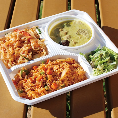 Mochica掲載店をご紹介。 中野区本町にある、アジア各国の料理が楽しめるアジア料理店 「アジアン屋台 チャオサイゴンパリバール 中野坂上店」 パッタイ・グリーンカレー・ナシゴレンが一緒に楽しめるアジアン弁当 “サイ弁当” をもちかえり♪
