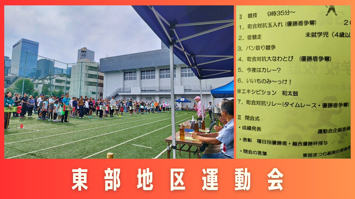 先日開催の東部地区の14町会が集い第48回目となる運動会。 中野東中の生徒がたくさんボランティアや選手で参加しています。 町会対抗で大縄跳びやリレーが行われ大変盛り上がるそうです。「今夜はカレー?」という種目が気になりました。 #中野