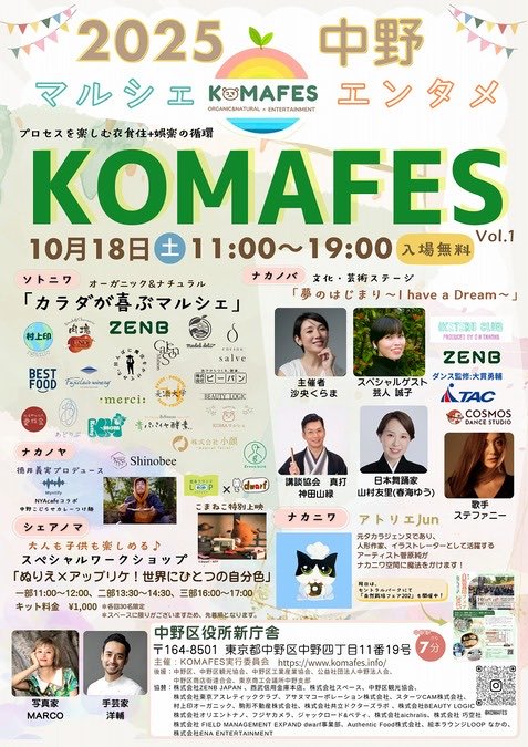 中野四季の森公園や区役所周辺の今日明日イベントを紹介しておきます。今日#コマフェス今日明日#自然栽培フェア#花と緑の祭典明日#アシバ祭