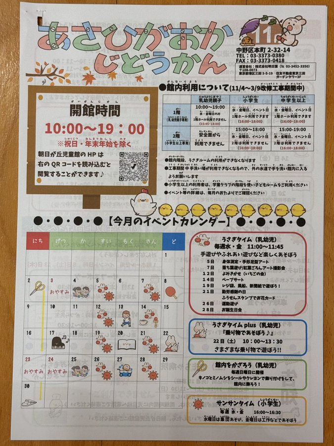 朝日が丘児童館、来週から4ヶ月間工事に入ります。使える場所や時間が少し変わるので、お気をつけください