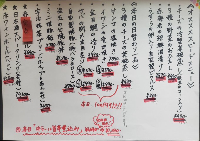 8/25(月)の一品料理です本日牛テール旨辛煮込み300円引きサンマの塩焼きやイワシの竜田焼き、金目鯛の造り、サバの酢〆等のお魚系100円引きご来店心よりお待ちしております【営業時間】18~23時【ご..