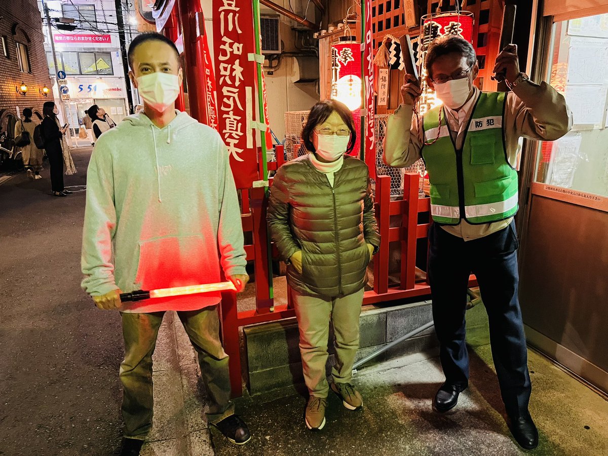 金曜の夜はいつも桃園町会の夜のパトロール。今日は4人で回りました。レンガ坂もクリスマス仕様で華やかです。桃園商店街も含めて徐々ににぎわいも戻ってきていますね。皆さま良い週末を♪