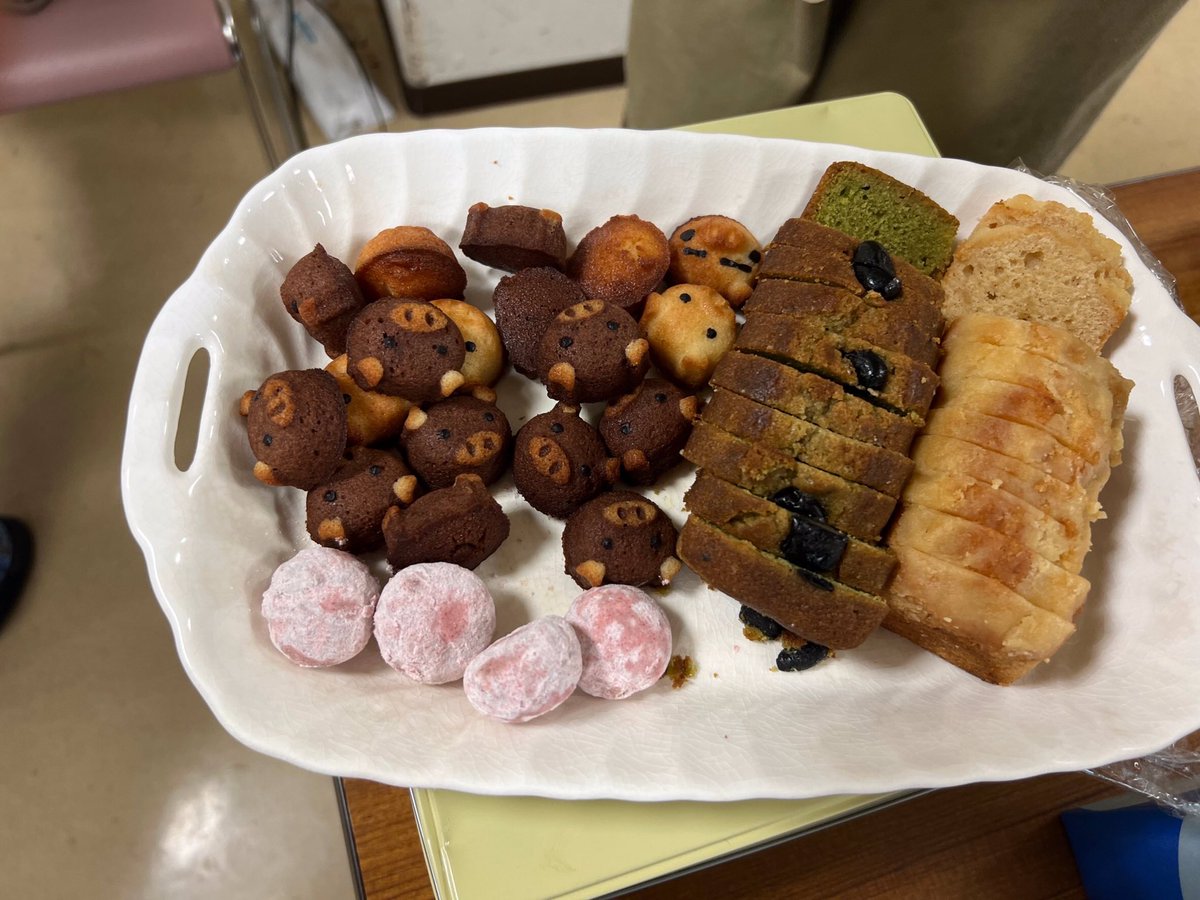今日は調理ボランティアのみなさんへ、おやつの差し入れもいただいたとのこと!ころころぶたさんかわいい〜! 広報担当は今、無料塾の中学生生徒と受験勉強なう。こちらのおやつは最中でした。しぶいのです。