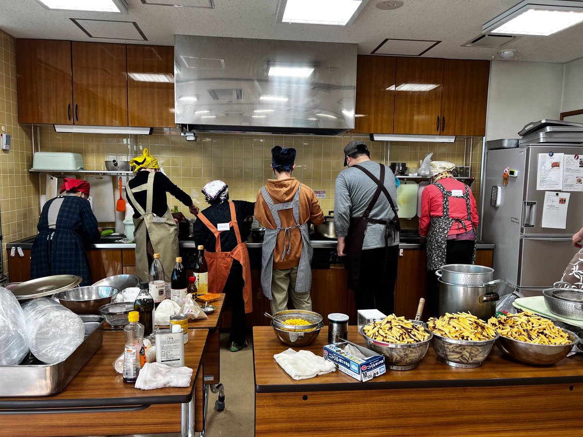 今日は調理ボランティアのみなさんへ、おやつの差し入れもいただいたとのこと!ころころぶたさんかわいい〜!広報担当は今、無料塾の中学生生徒と受験勉強なう。こちらのおやつは最中でした。しぶいのです。0214