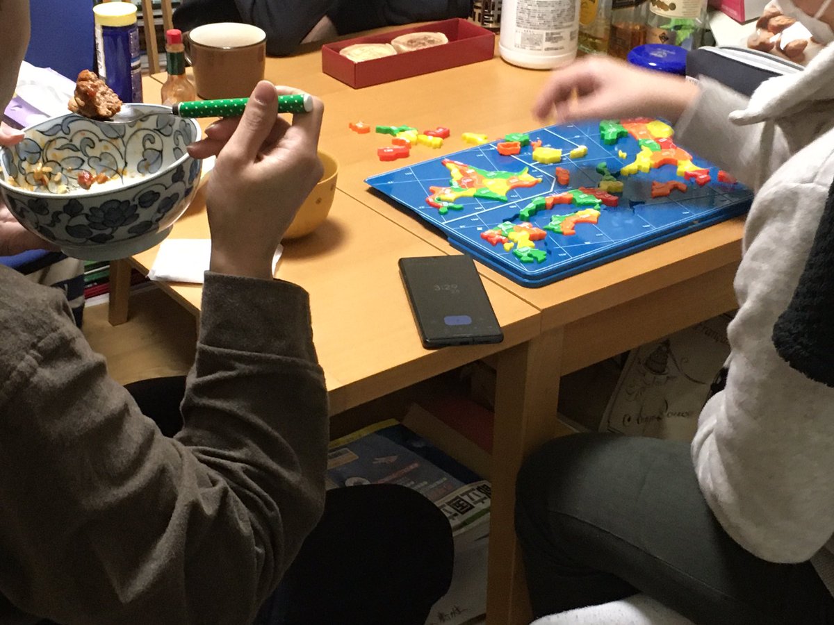 今日の塾部屋ごはんの写真は撮り忘れました!ミートボールトマト煮丼にたくあん入りポテサラにお味噌汁でした。 ごはん終わって、地図パズル。タイム遅くなってるんだけど!(笑) 今日はおおたとしまささんも来られて賑やかな塾部屋でした。