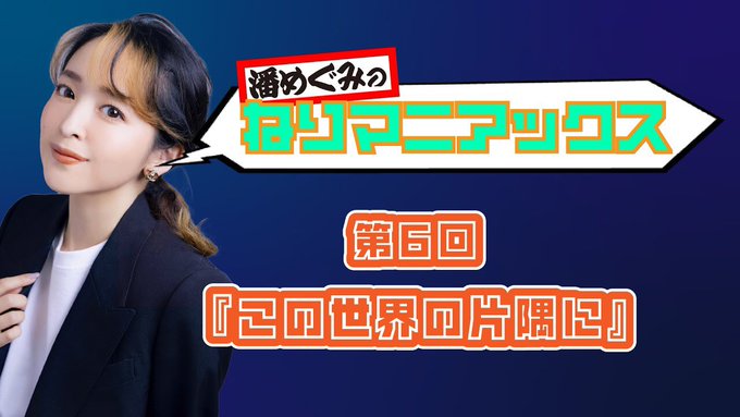 連載トークエッセイ #ねりマニアックス「#潘めぐみ さん」PART6 最終回を公開! 今回取り上げるのは、2016年公開の映画『#この世界の片隅に』。 主人公の妹 #浦野すみ 役で出演した経緯や、本作への思いなどを語っていただきました。 ぜひお聞きください! https://nerima-eizobunka.com/nerimaniax/ #片渕須直 #日藝