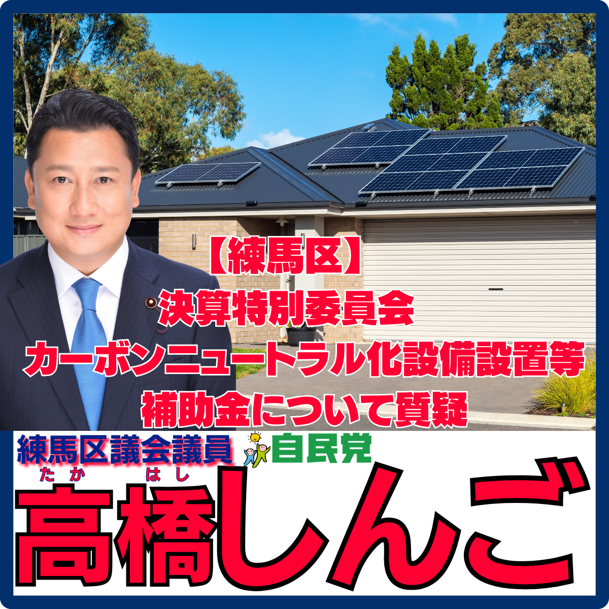 【練馬区】 決算特別委員会 カーボンニュートラル化設備設置等補助金に質疑 練馬区議会議員 高橋しんご - 高橋しんご(タカハシシンゴ) | 選挙ドットコム
