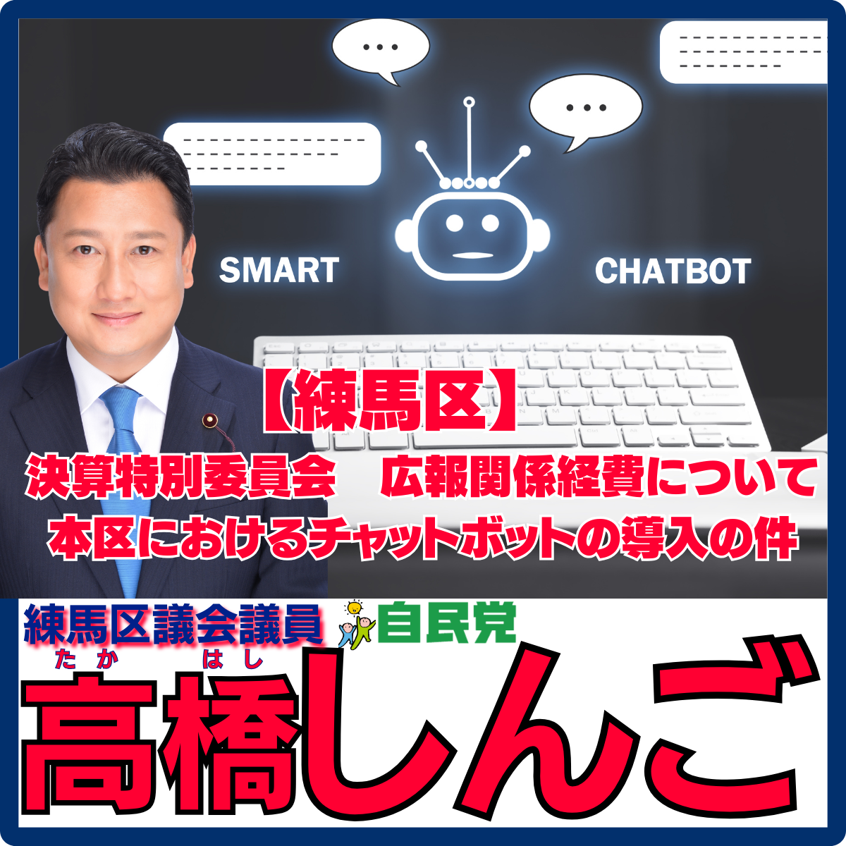 【練馬区】決算特別委員会 広報関係経費チャットボットの導入の件に質疑 練馬区議会議員 高橋しんご - 高橋しんご(タカハシシンゴ) | 選挙ドットコム