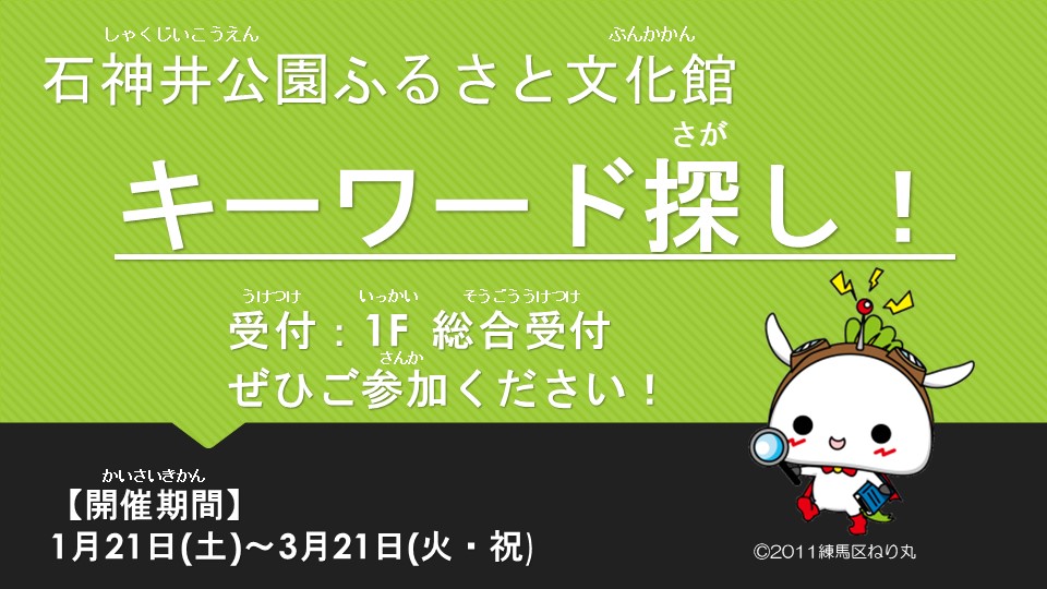 石神井公園ふるさと文化館と旧内田家住宅(隣接)を探検して、キーワードを探そう!