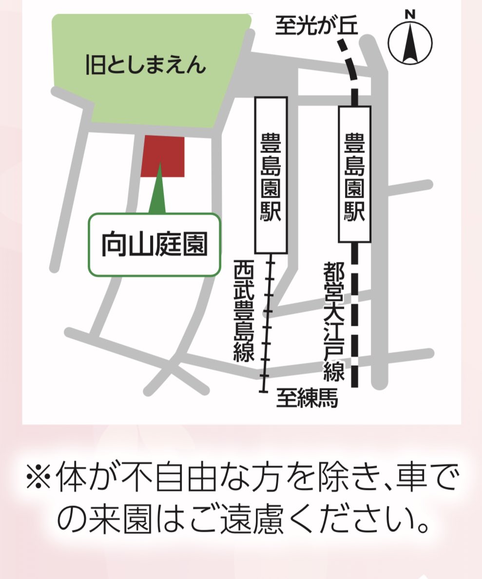 練馬区立向山庭園では3月24日(金)~27日(月)日没~午後8時30分(雨天中止)の期間、桜のライトアップをして夜間の開放してます!