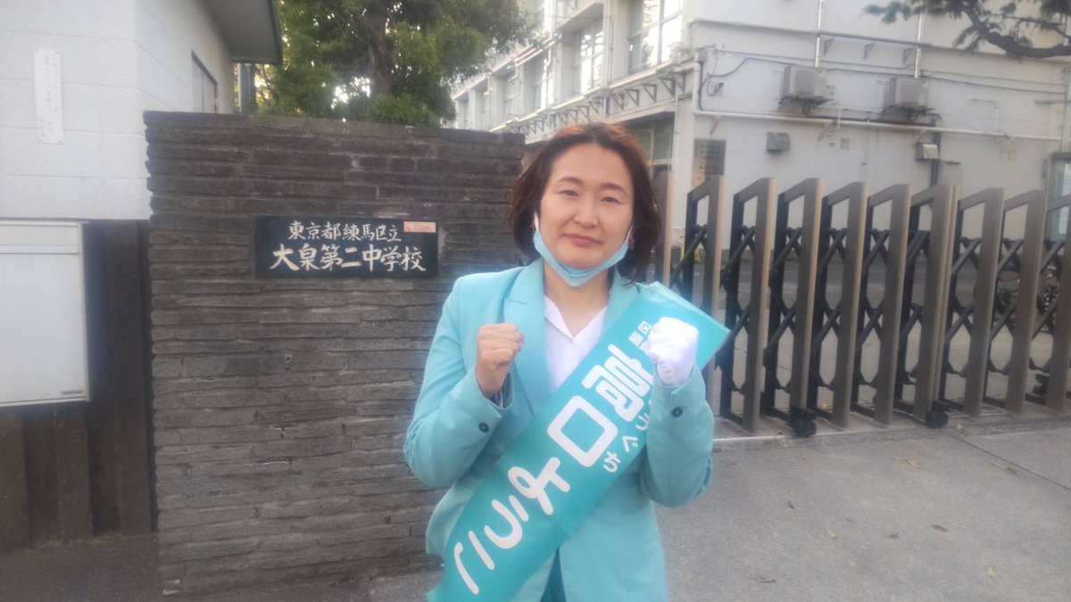大泉第二中学校そのものを分断する道路計画に「断固反対、学校を守る、子どもを守ります!」とお話ししながら回っていたところ、近くを通った学生さんから、「がんばってください」と声をかけて頂きました!!